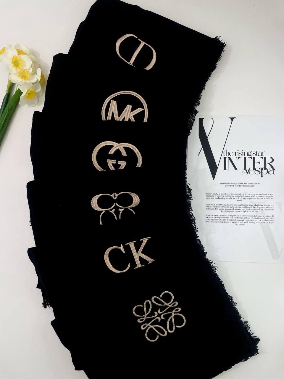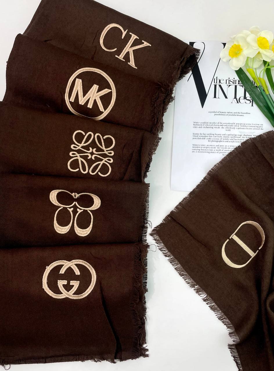 روی دستک های شال طرح مارک های مختلف گلدوزی شده