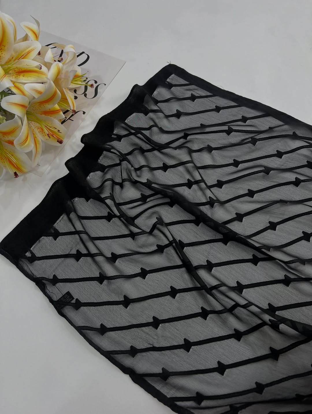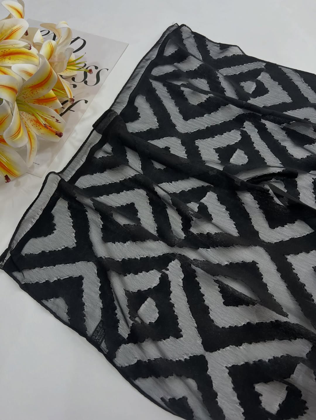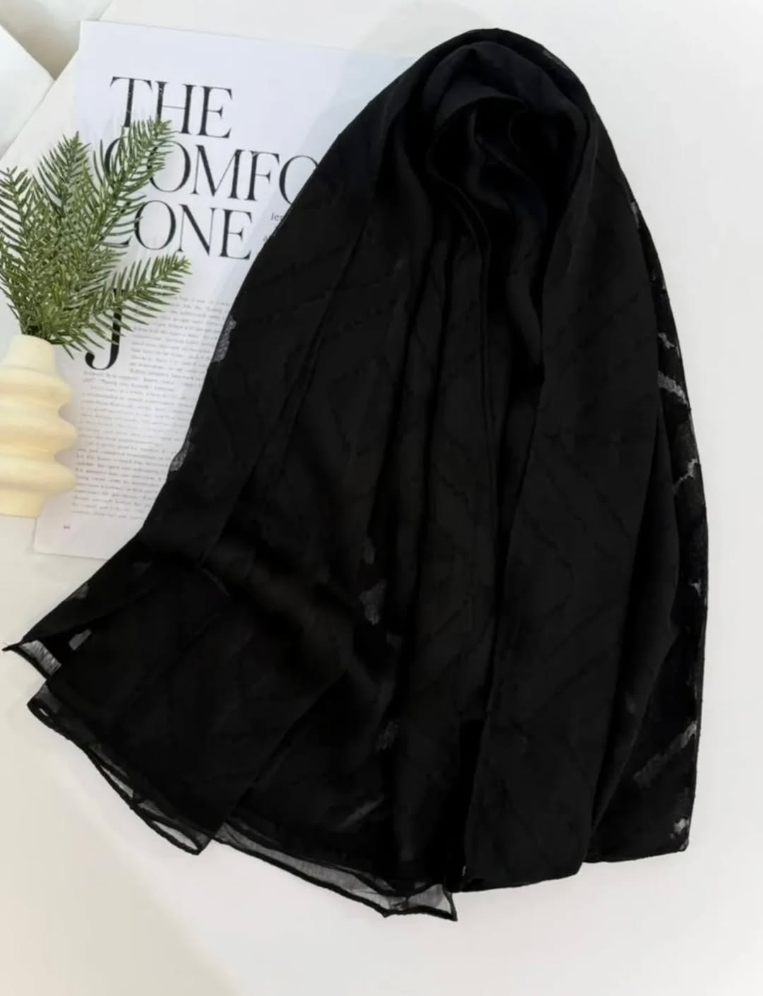 این شال با بافتی لطیف و سبک به زیبایی روی سر می نشیند و ریزش نرم آن فرم صورت را ظریف تر نشان می دهد. مناسب برای مهمانی های رسمی مجالس عروسی دورهمی های خاص و حتی استایل های مینیمال و کلاسیک روزمره