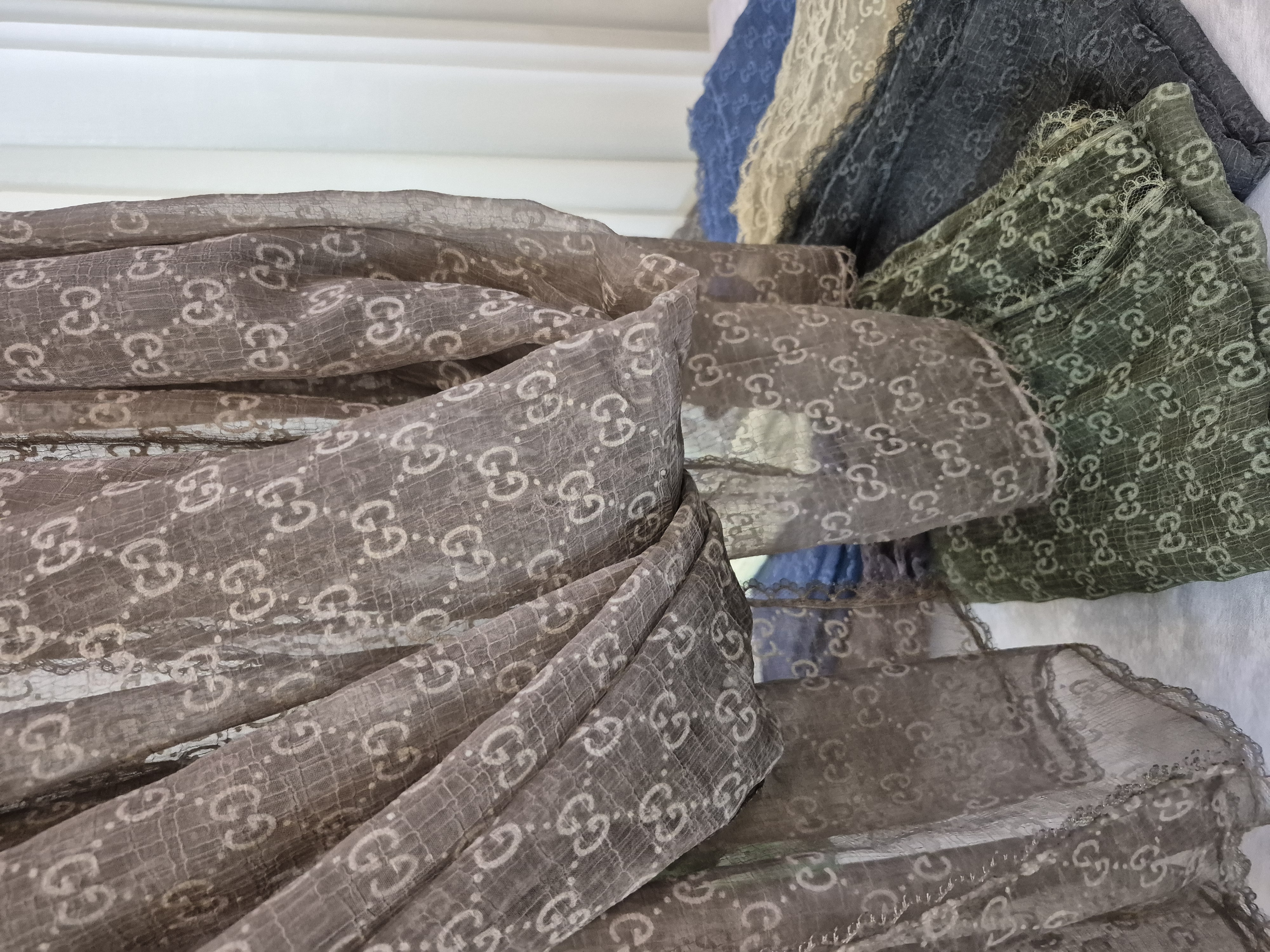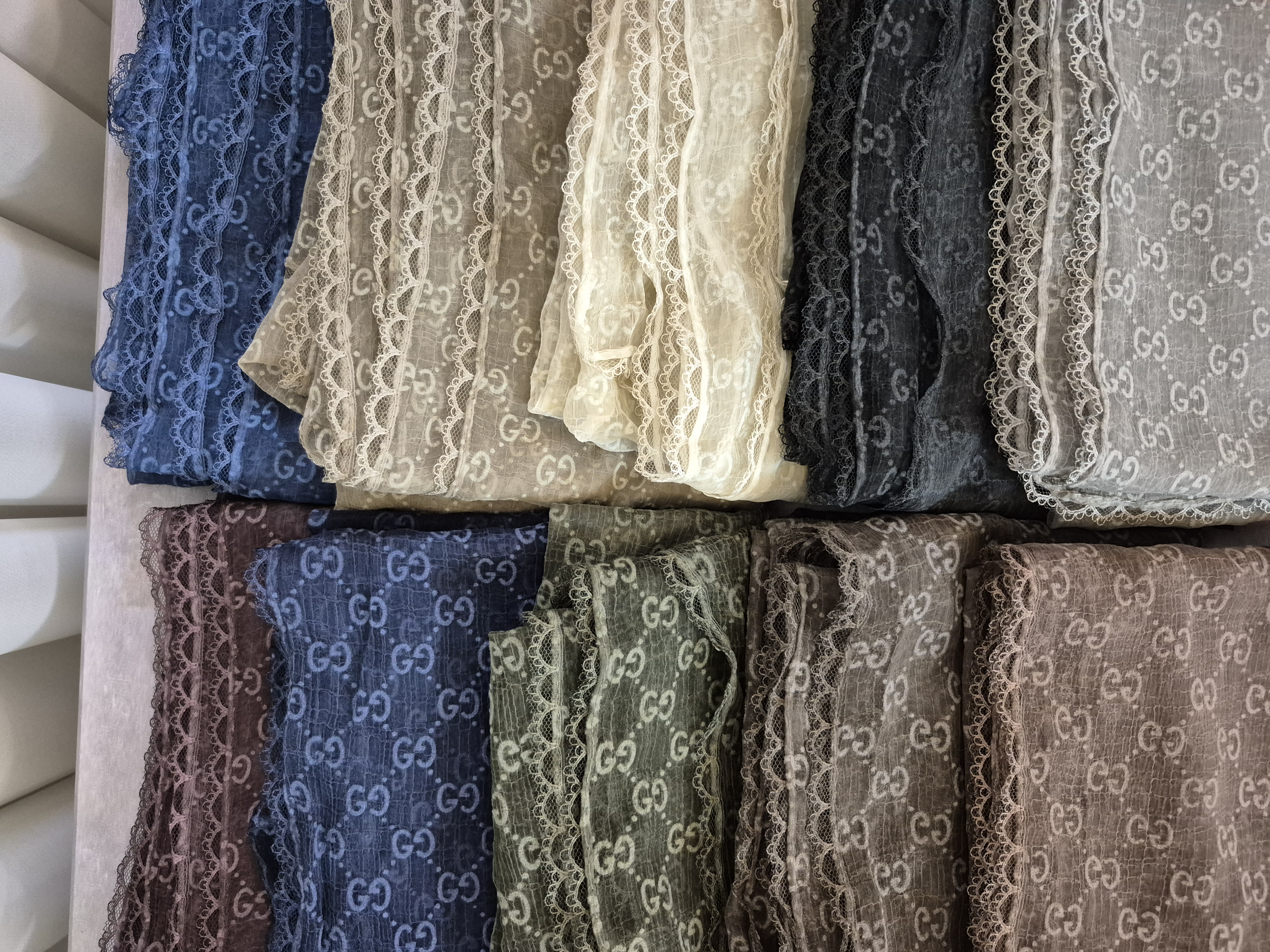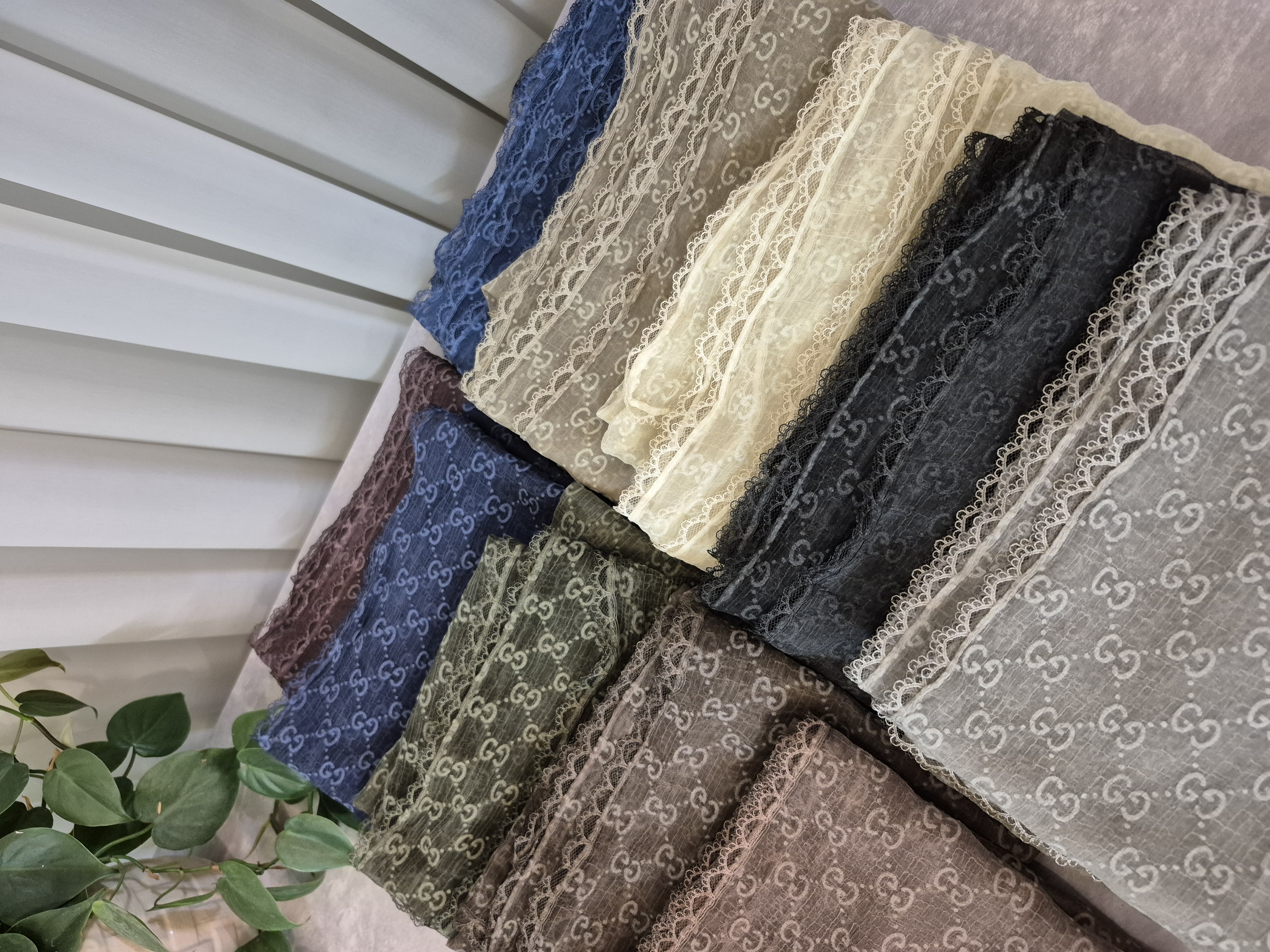 لطافت پارچه حریر باعث می شود شال به زیبایی روی سر بنشیند و ریزش طبیعی آن فرم صورت را ظریف تر نشان دهد. گیپور کارشده در دور تا دور شال نیز جلوه ای خاص و مجلسی ایجاد کرده که آن را برای مهمانی ها مراسم رسمی و استایلهای شیک روزمره ایده آل میکند.